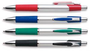 Snygg, silverfärgad kulspetspenna med färgade detaljer och gummigrepp för en behagligare skrivkänsla. Finns även att köpa som pencil eller med gelbläck. Det finns möjlighet att beställa pennorna i egna PMS- färger vid order om minst 30000st.